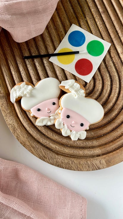 Heerlijke vanille koekjes hand gedecoreerd met royal icing. De set bestaat uit 2 pietjes, een schilderspaletje en kwastje. Klein beetje water gebruiken en schilderen maar!